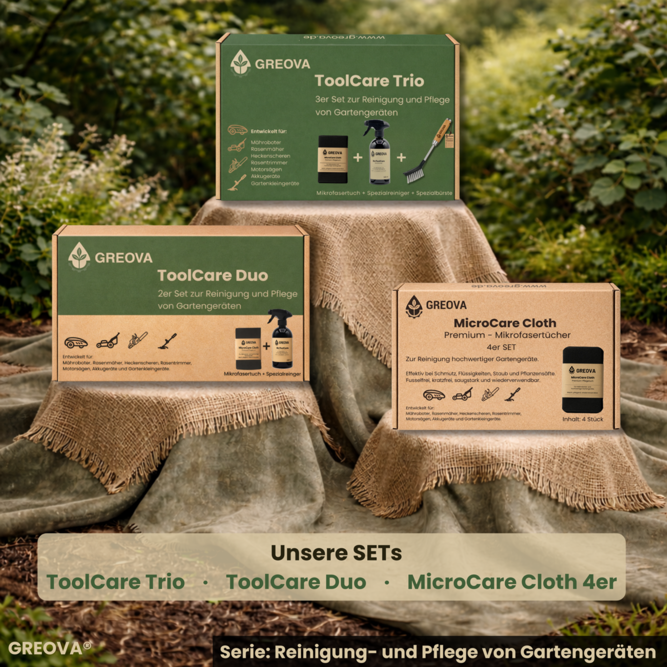 Reinigungs- und Pflegeprodukte für Gartengeräte - optimal kombiniert.